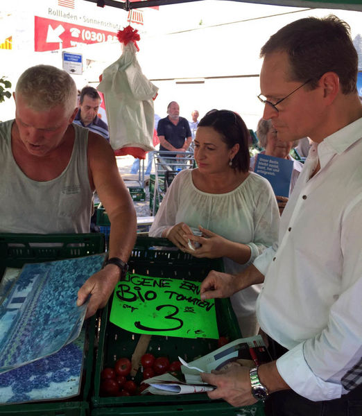 Michael Müller zu Besuch auf dem Friedenauer Wochenmarkt
